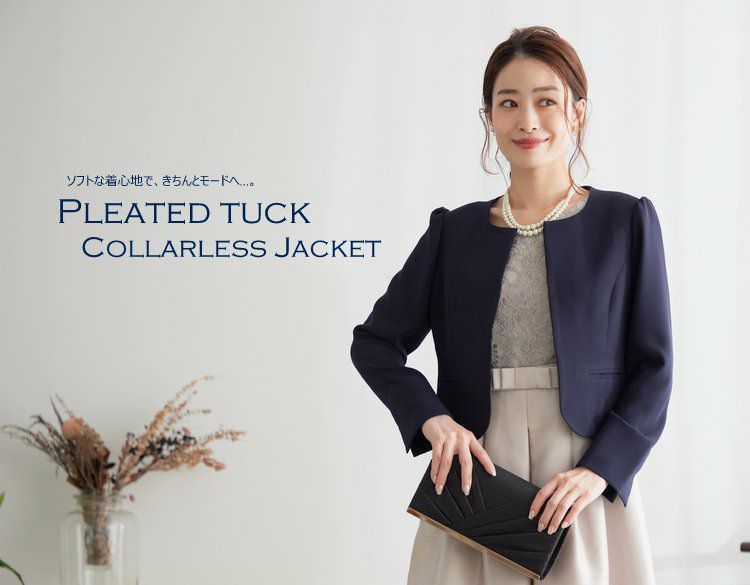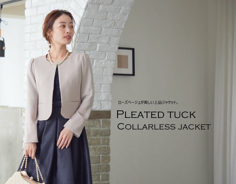 他の画像を見る 【ジャケット 日本製】 プリーツタックのノーカラージャケット(ローズベージュ) クーポン対象 送料無料 PLIQUA特別価格 ¥ 14,300 税込 カートに入れる お気に入りに登録する