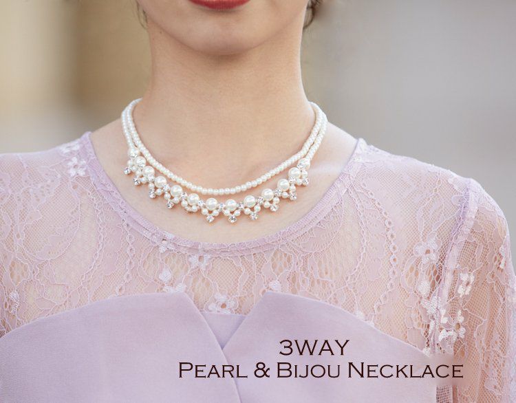 【ネックレス パーティー 結婚式 お呼ばれ】 Made in JAPAN スネークチェーン&パール3WAYネックレス