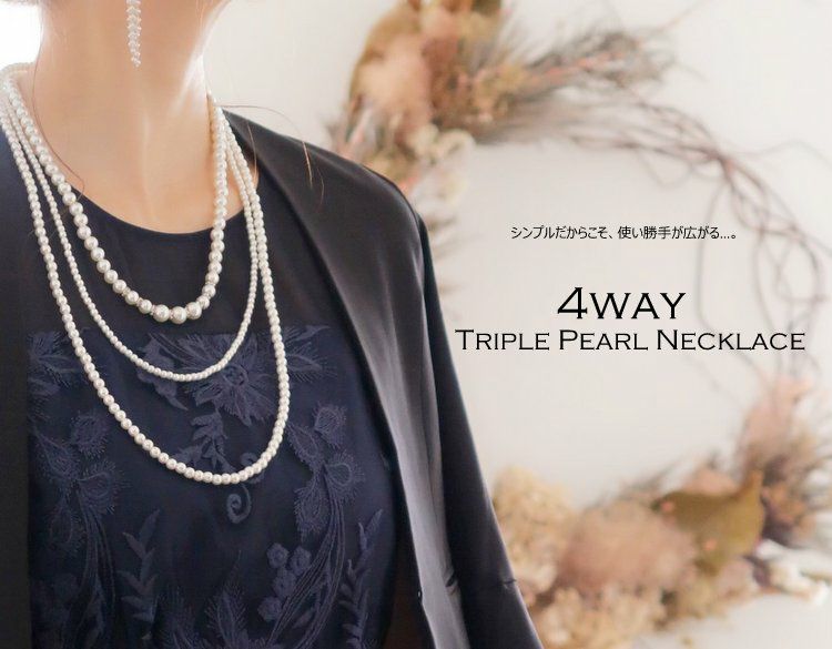 Made in JAPAN 1本で4役!3連パールネックレス