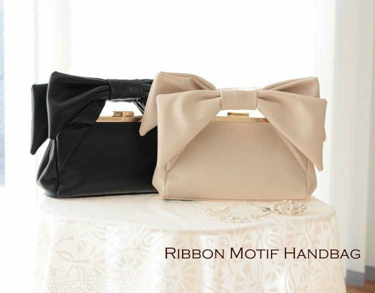 リボンモチーフのハンドルが印象的な、とてもおしゃれなハンドバッグ。