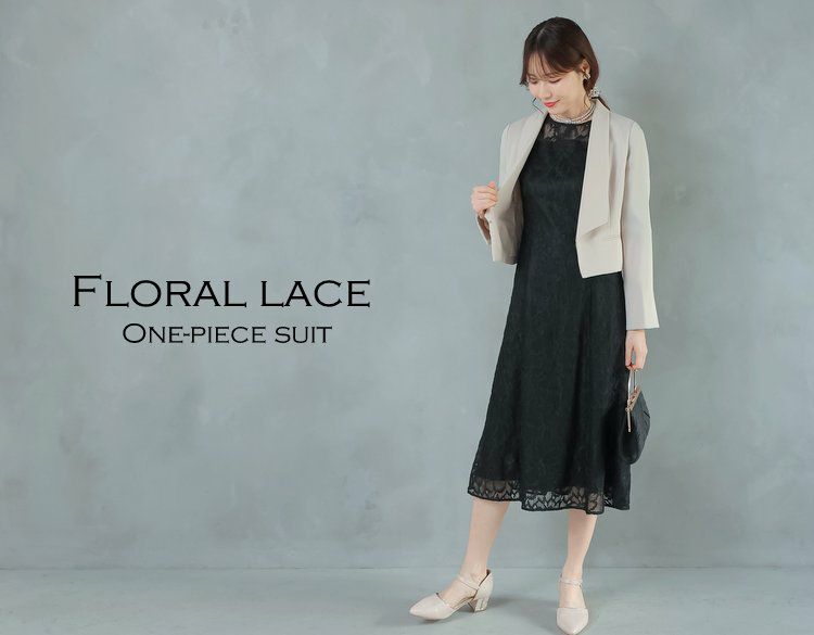 【セレモニースーツ・フォーマルスーツ】 フローラルレースのワンピーススーツ(ネイビー)