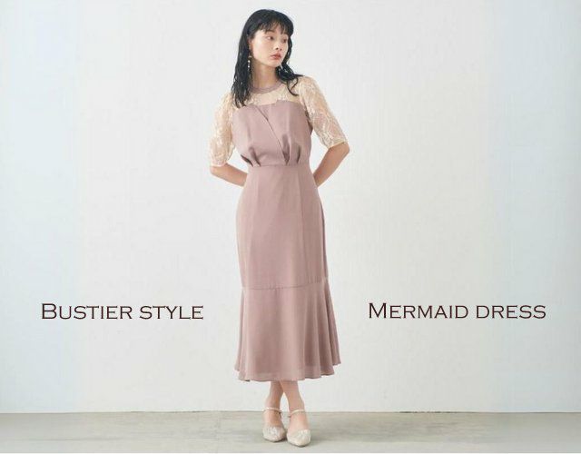 ビスチェスタイルの胸元とマーメイドシルエットが美しいドレス。