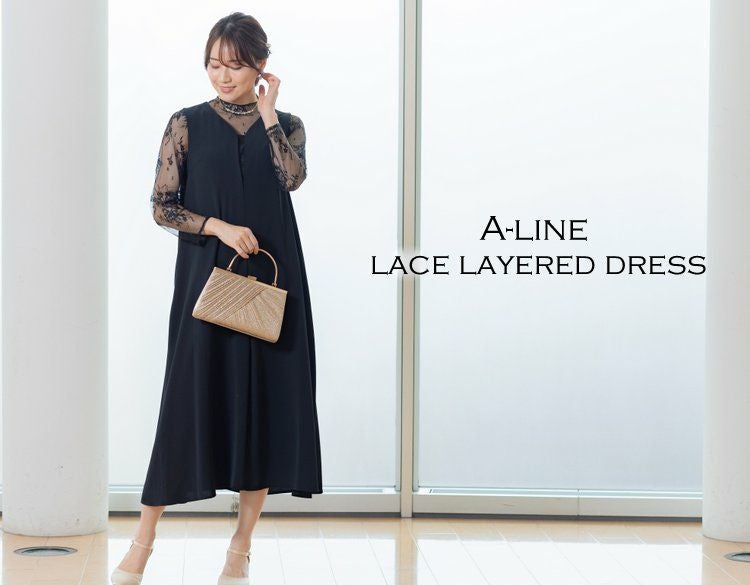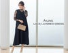 【パーティードレス】 Aラインレースレイヤードドレス(ブラック)