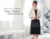 シンプルなデザインでジャケットは高級感があり、ワンピースの丈も少し長めで丁度良かったです。