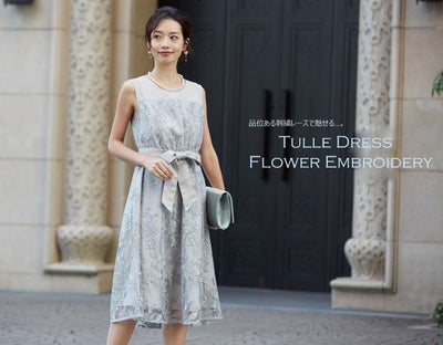 フラワー刺繍チュールワンピース(ペールグレー)のレビューを書く