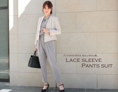 レーススリーブパンツスーツ(ベージュ×グレー)のレビューを書く