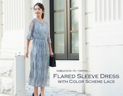 配色レースのフレアドレス(ブルーグレー)のレビューを書く