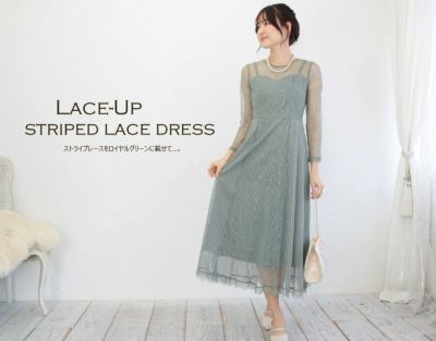 ストライプレースの編み上げドレス(ロイヤルグリーン)のレビューを書く