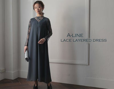 Aラインレースレイヤードドレス(ダークブルーグレー)のレビューを書く