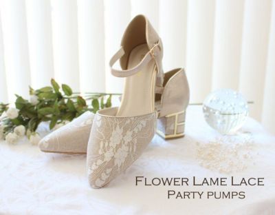 フラワーラメレースのパーティーパンプス(ベージュ)のレビューを書く