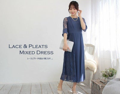 レース&プリーツミックスドレス(ロイヤルブルー)のレビュー