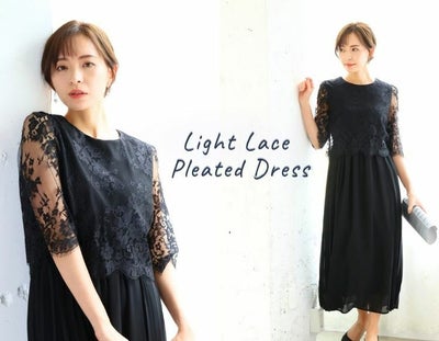 軽やかレースのプリーツドレス(ブラック)のレビュー