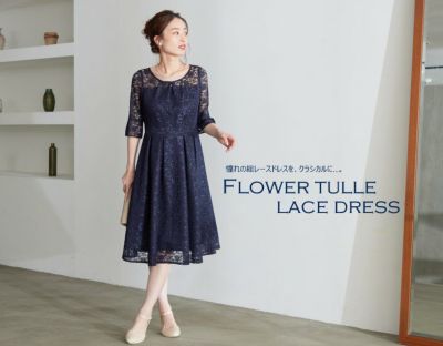 Made in JAPAN フラワーチュールレースワンピース(ネイビー)のレビュー