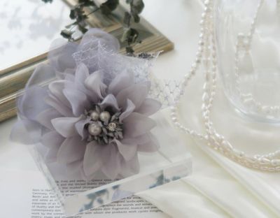 チュールレースダリアコサージュ(グレー)のレビュー
