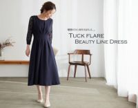 Made in JAPAN タックフレア美ラインワンピース(ネイビー)