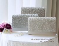 ビーズ刺繍のサテンパーティークラッチ