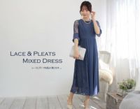レース&プリーツミックスドレス(ロイヤルブルー)