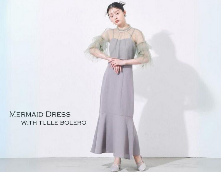 チュールボレロ付マーメイドドレス(モスグレー)