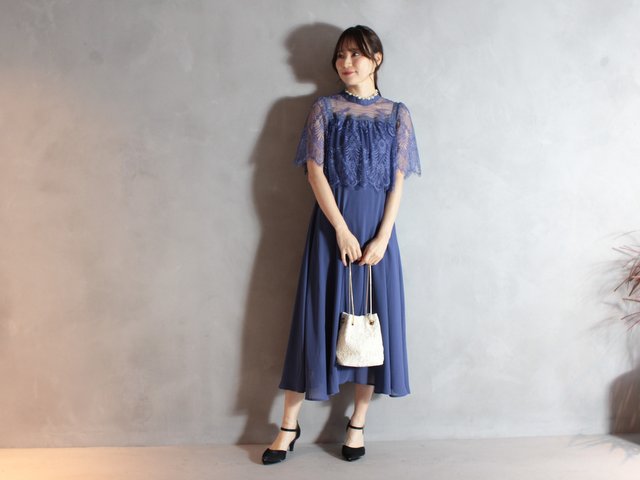 親族として参列する30代に人気の総レースドレス(ネイビー)
